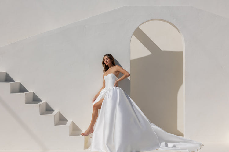 Our gowns are celebrated for their fine quality materials and exquisite craftsmanship. From our figure-hugging signature crepe to the sleek, lustrous mikado, each dress is designed to offer an effortlessly refined look, exceptional support, and an elevated experience that feels uniquely you.