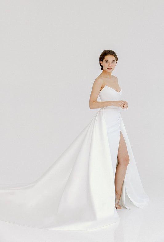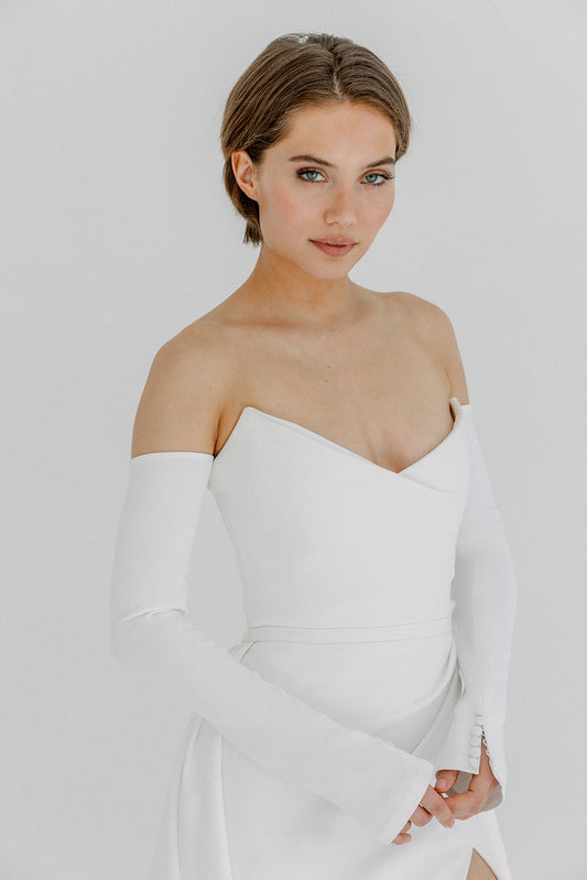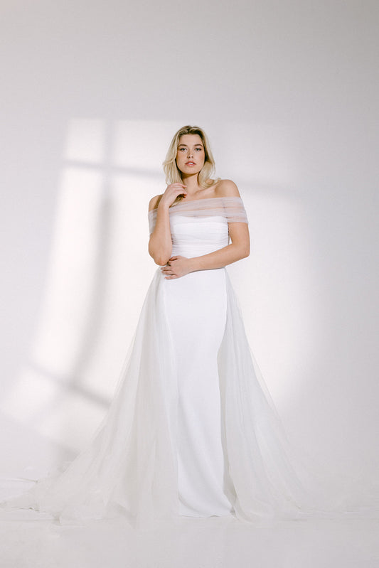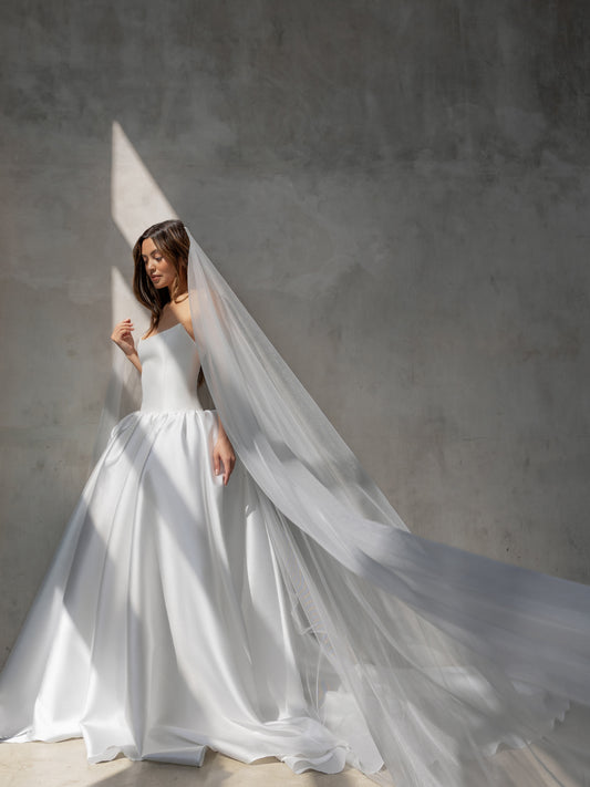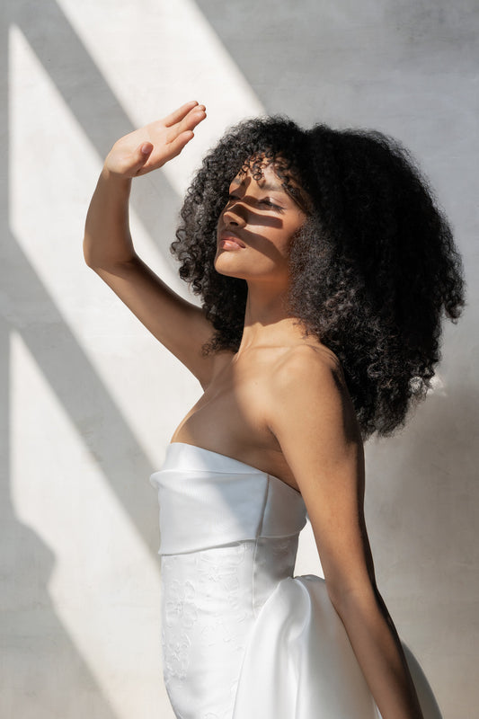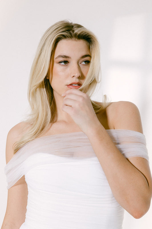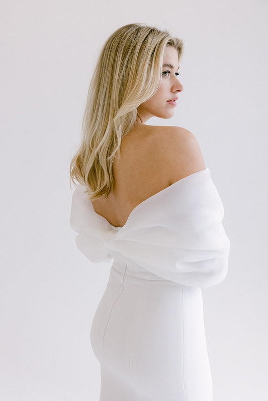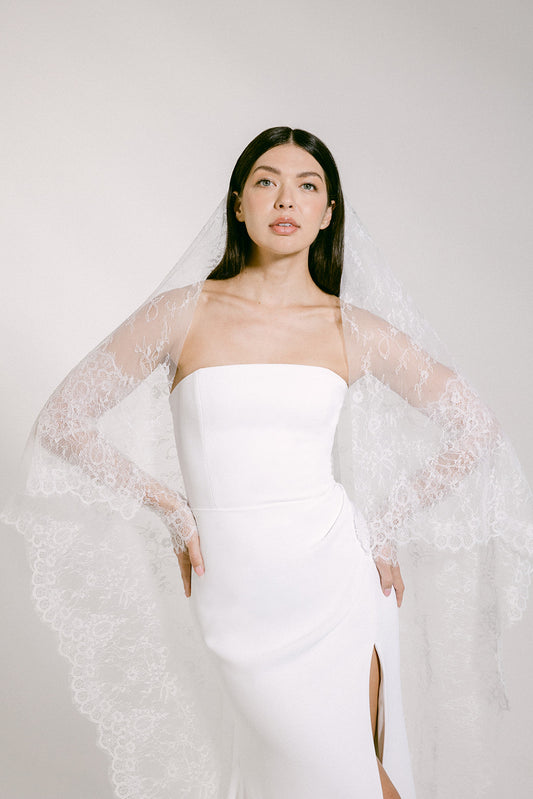 Elevate your wedding looks with the right accessories that are made with love in Chicago. Whether you are looking to make a statement or just the right touch of a supporting role, we have it all. For a dramatic train look, consider an overskirt, flowy wings, or oversized bow. If you’re striving for a minimal look, compliment your gown with a classic veil, bridal scarf or gloves for a timeless style. Our accessories come in a gorgeous chantilly lace, tulle and crepe for a traditional yet modern look. Or add a touch of luxury with pearl embellishments for the perfect something ‘extra’.