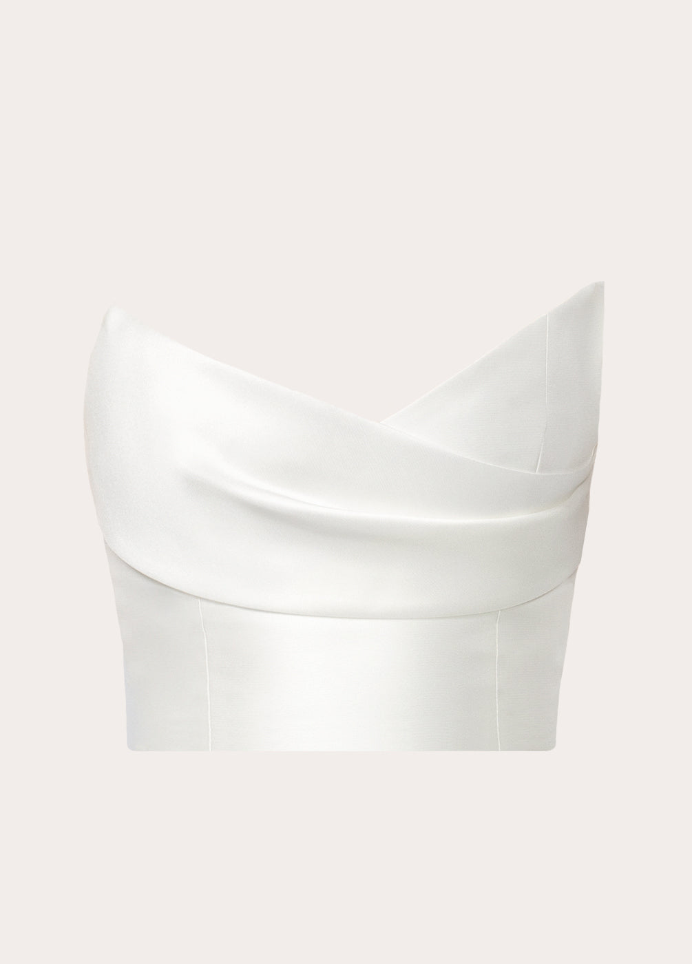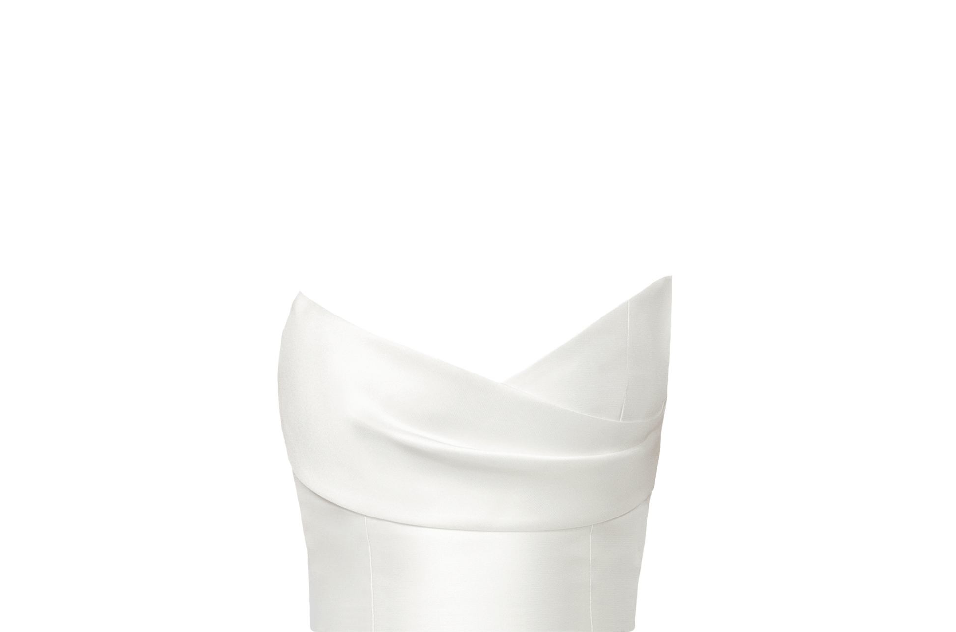 Bianca (Sleeveless) Mini combines minimalist lines with luxurious details for a polished look. Crafted in a lustrous Spanish Mikado, the strapless v-neckline and hand-draped bias front create a structured yet soft finish, while the fully boned bodice hugs every curve with endless support.