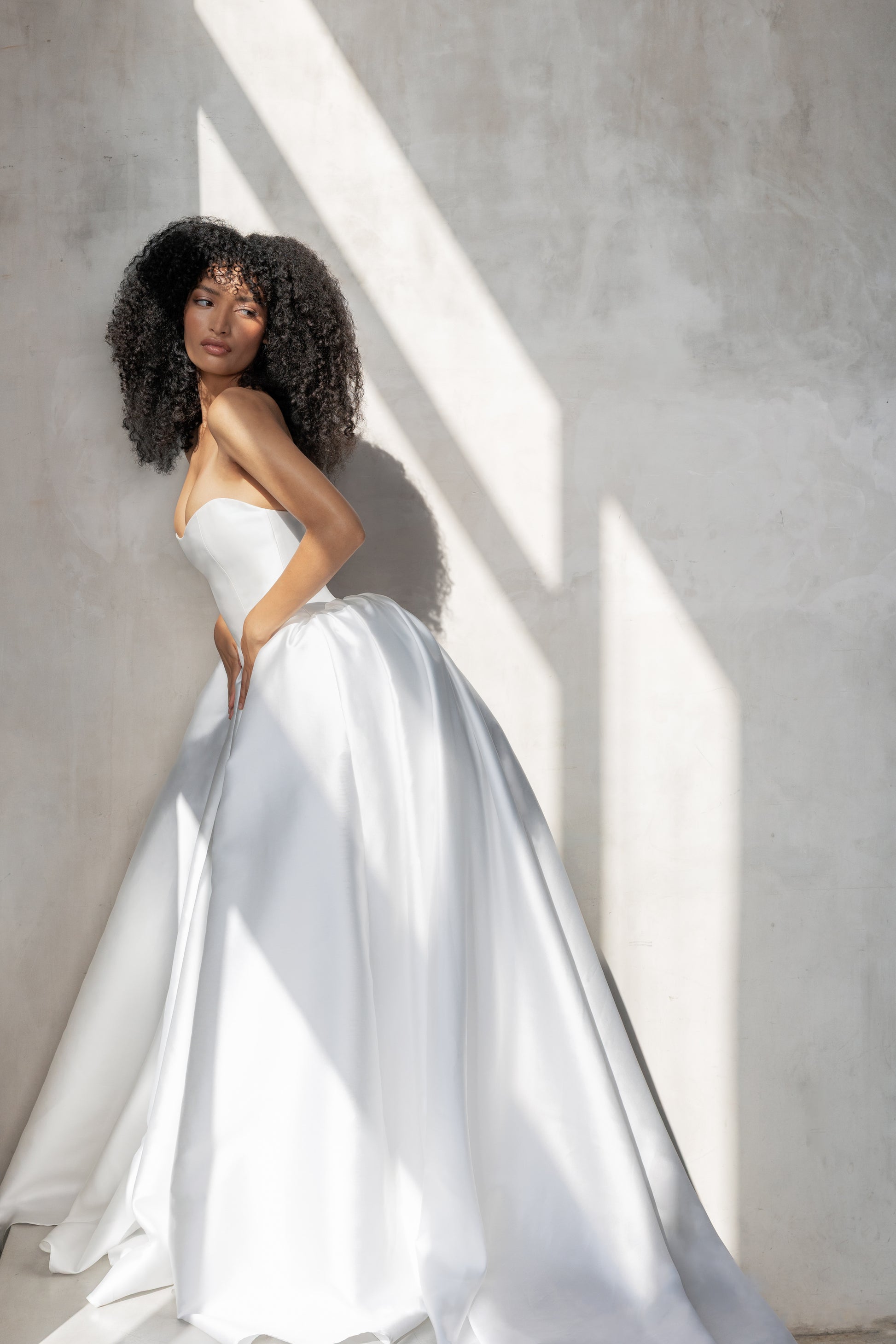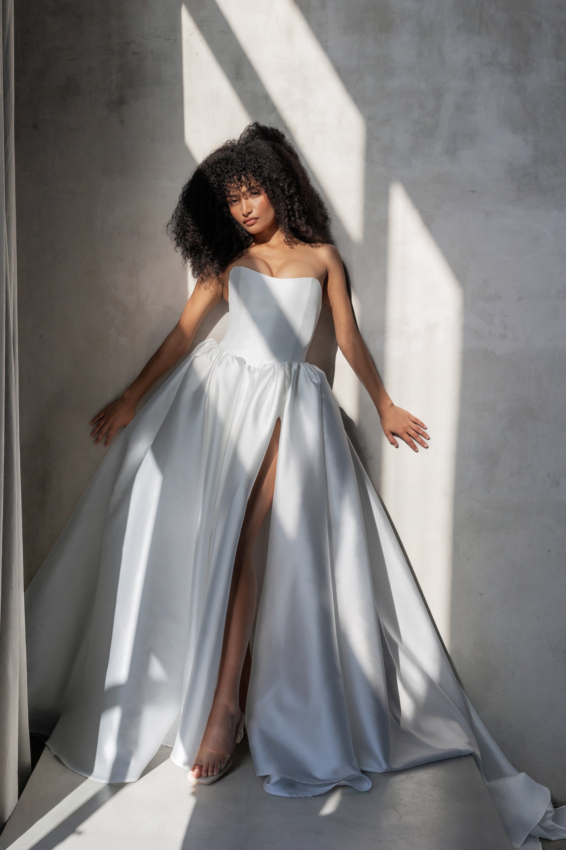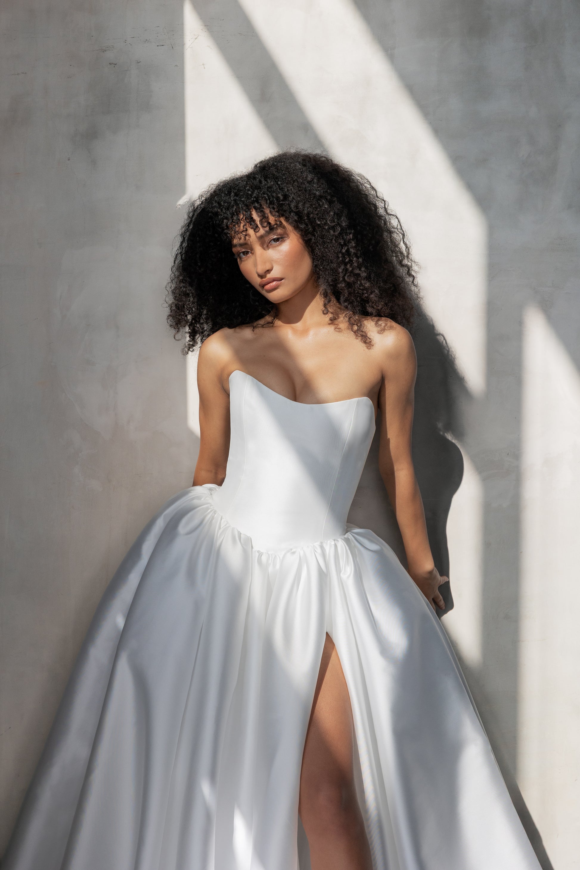 The Luciana Gown makes a statement with its modern sweetheart neckline, basque waist and striking slit. Crafted from lustrous Italian Mikado, this ballgown delivers bold volume with a surprisingly lightweight feel - the perfect balance between drama and ease.